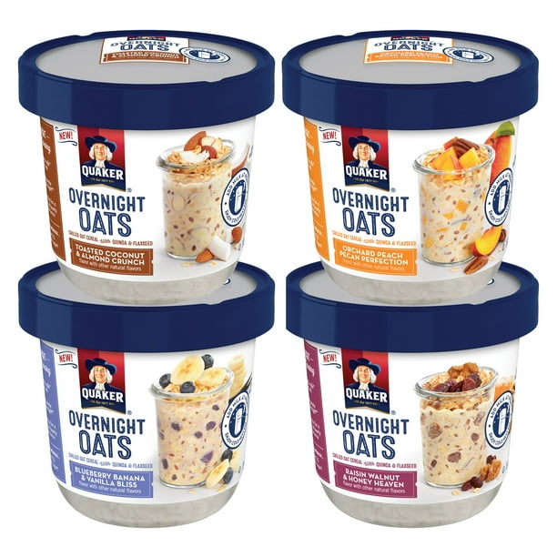 Amazon.com: Quaker Instant Oatmeal, 4 Flavor Variety Pack, … Blueberry Banana Overnight Oats - 1/2 cup Quaker Oats - 1/2 cup nonfat milk and 1 teaspoon vanilla - 1/2 cup blueberries and 1/3 cup banana, sliced ... Place in fridge and enjoy in the morning or a few hours later. Baked Oatmeal Cups - 4 cups Quaker Oats - 2 cups non-fat milk and 1 tbsp vanilla - 1 tbsp honey and 1 egg plus 1 egg white, beaten ...