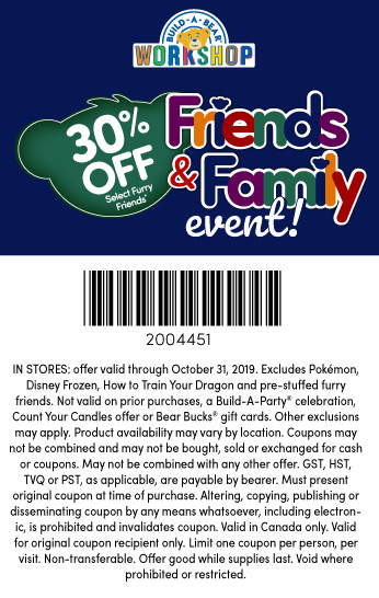 Build-A-Bear Coupons - 40% OFF in August 2022 - CNN All shops. /. Build-A-Bear Coupons. $10 off any purchase of $40 or more. 25% off all Build-A-Bear stuffed animals. Free shipping on any order. Shop online at Build-A-Bear and add your desired products to your shopping bag. Click the shopping bag icon in the upper-right of the screen to continue to your order summary and begin the checkout process.